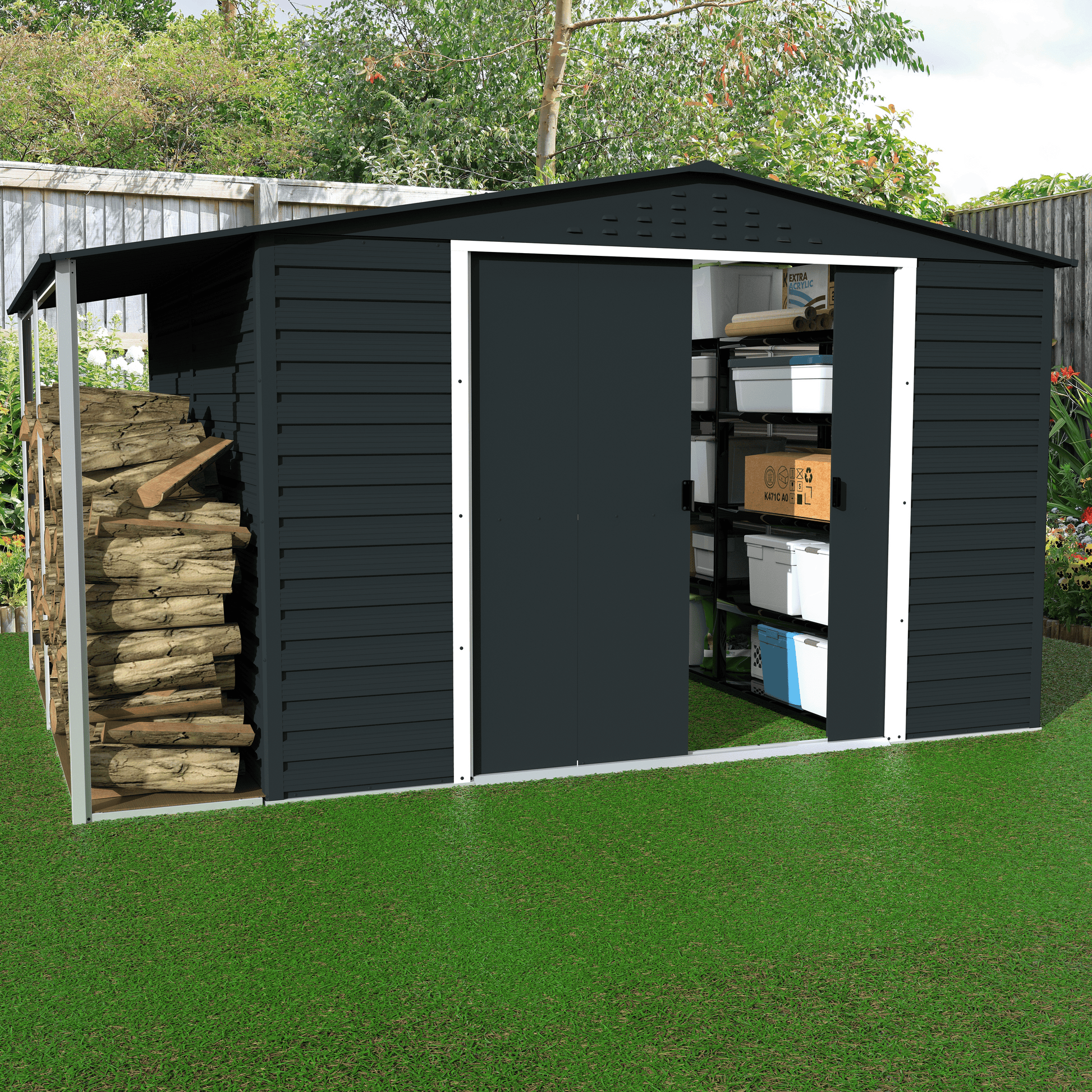 Caseta de Jardin Alpine 10x10 gris antracita + extensión leñero