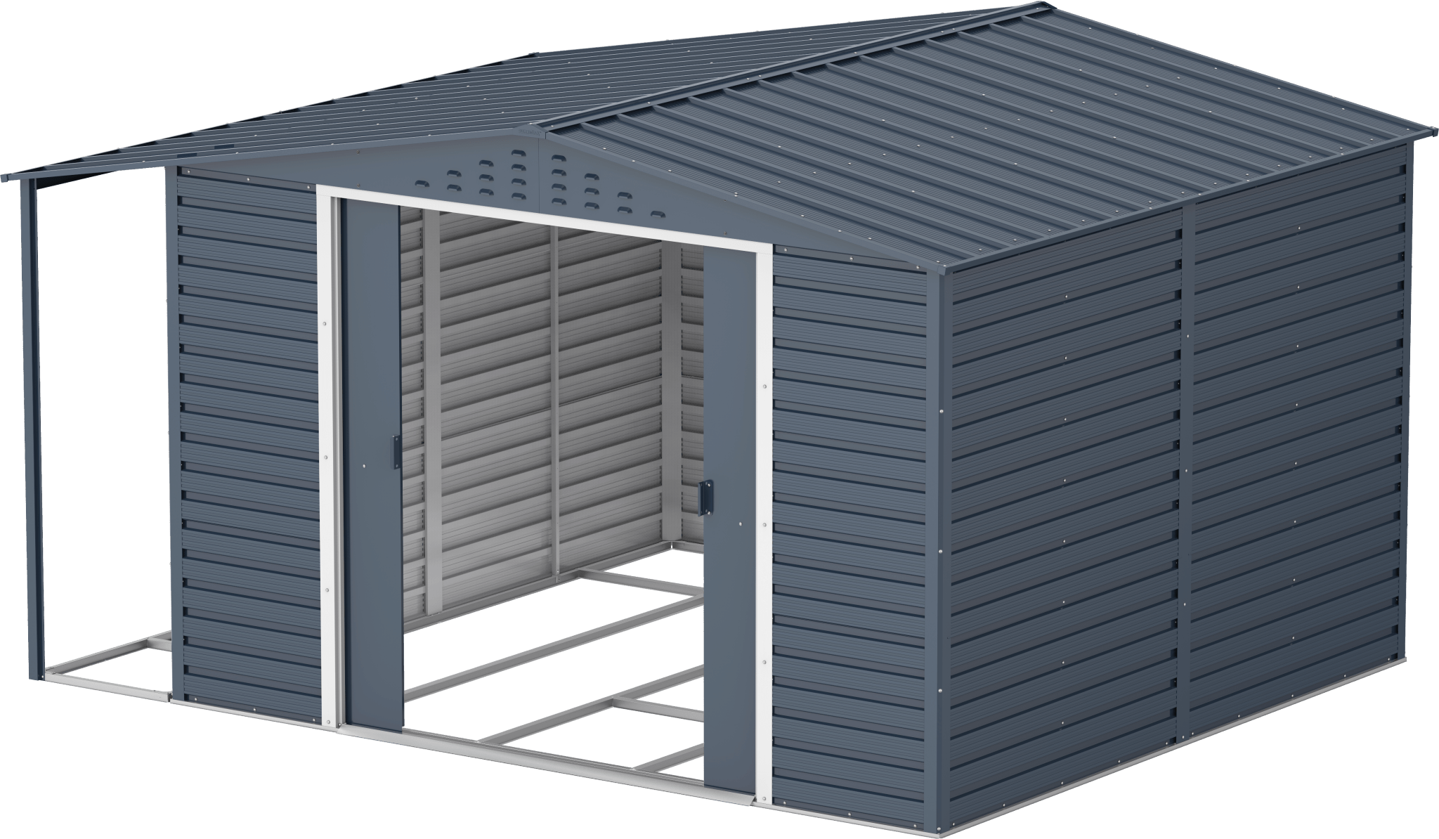 Las casetas de jardín Alpine de Duramax 10×10 con leñero en gris antracita son la opción ideal para quienes buscan una solución de almacenamiento exterior completa, que combine resistencia, funcionalidad y diseño moderno. Con unas dimensiones exteriores de 321,6 × 303,1 × 214,2 cm y una superficie de 9,15 m², este modelo ofrece un amplio espacio para organizar herramientas, mobiliario de jardín y accesorios de exterior.