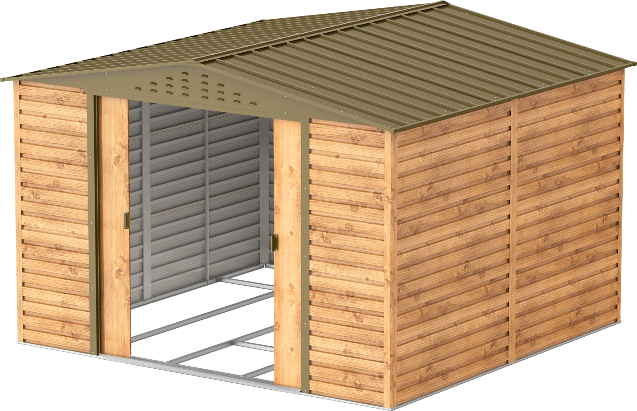 Las casetas de jardín Alpine de Duramax 10×10 en imitación madera destacan por su resistencia, funcionalidad y diseño premium, ofreciendo la estética de la madera con la durabilidad del acero galvanizado. Una opción ideal para jardines o patios que buscan practicidad sin renunciar al diseño.